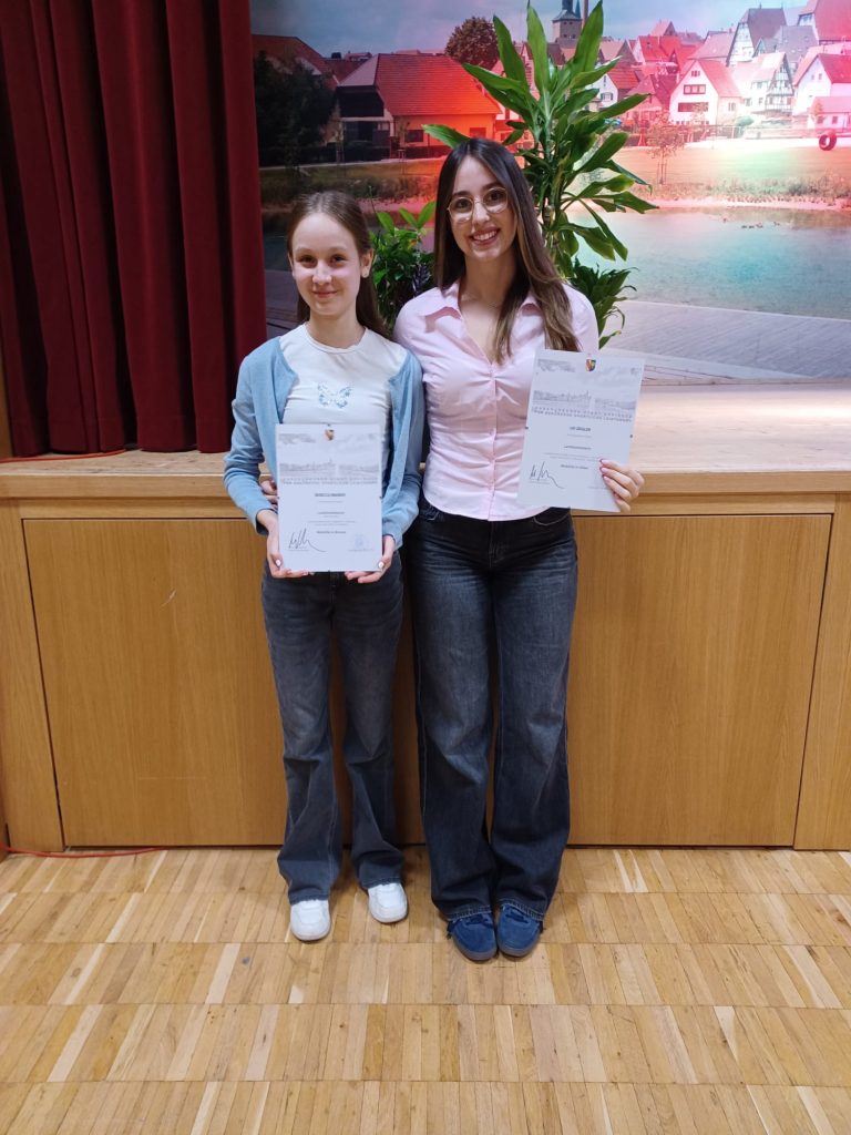 Für ihre herausragenden Leistungen auf überregionaler Ebene, erhielten Rebecca Maurer eine Bronze-Medaille und Liv Ziegler eine Silber-Medaille für Einzelsportlerinnen.