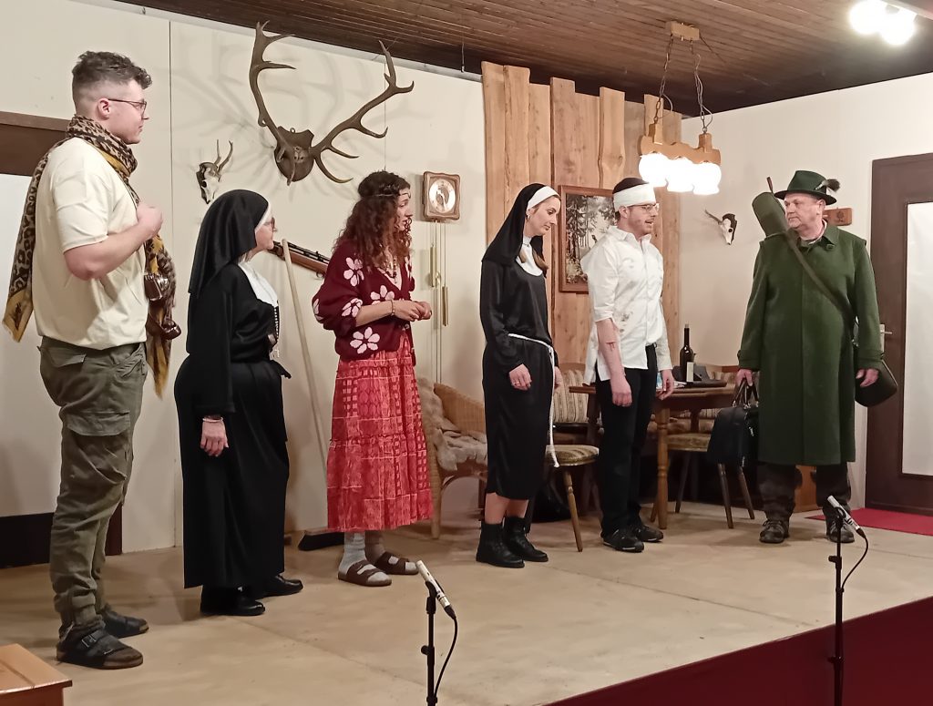 Bei kleinen Textunsicherheiten stand Manuela Störzinger helfend zur Seite. Der langanhaltende Applaus zeigte deutlich, wie gut das Stück beim Publikum ankam – und war ein verdienter Lohn für die wochenlangen Proben.